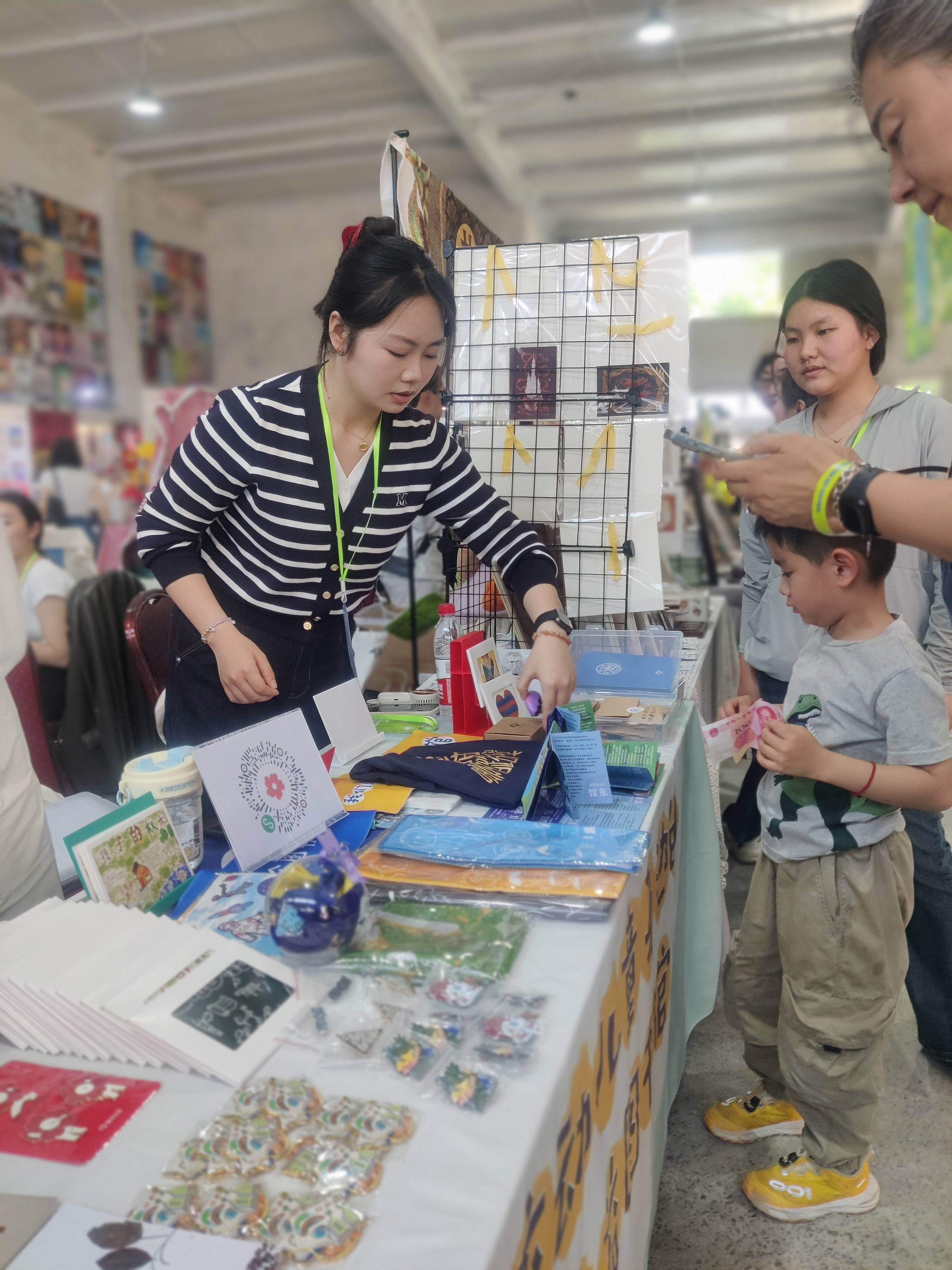 第一次参加微澜的公益集市,插画节艺术节,遇到我的老熟人绘本创作者/插画师苏打,苏打买了我们产品支持了一把。和立达学院的四位大一学生搭档,感受现代大学生的热情活力、胆量、跳脱的思维和超强适应能力。他们是今天的销冠,为啥这么说,因为早上卖200多,他们下午卖600多啊:)四位有爱心友善可爱的孩子。