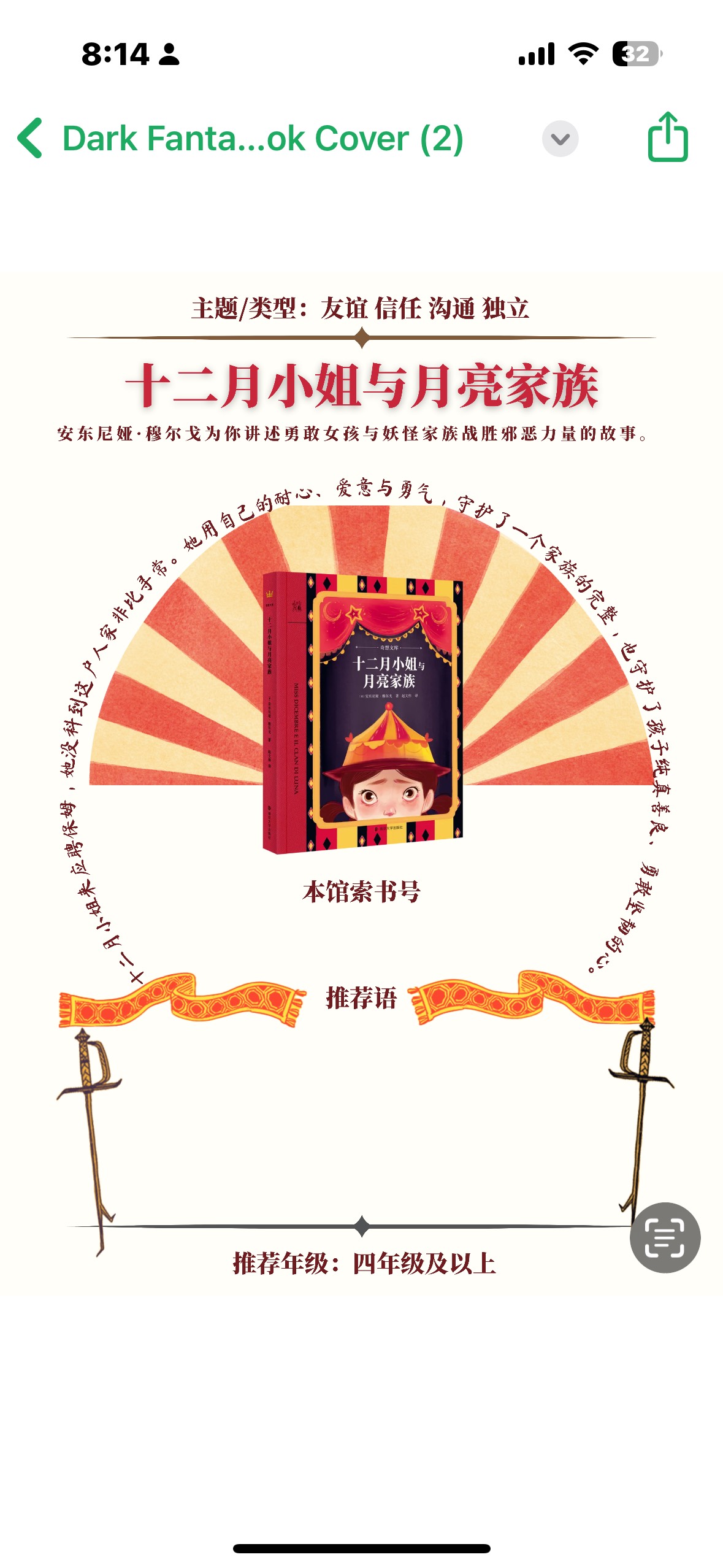 其实是从3.18晚上开始制作图书推荐海报,做到半夜后次日早上起来接着做到了下午2点半左右(做那么久和制图技术熟练度不足有一定的关系……)。看到群里有朋友是用ai做的,效果也不错,原本也想试着用ai做,但是我自己用ai做的图实在有点难看,索性还是自己设计与制作了。也是第一次用canvas做图,领了免费一个月的会员(做完第二天就取消续费了)素材比较多,也可以调节尺寸,导出还能调整文件大小,较为方便。参……查看更多